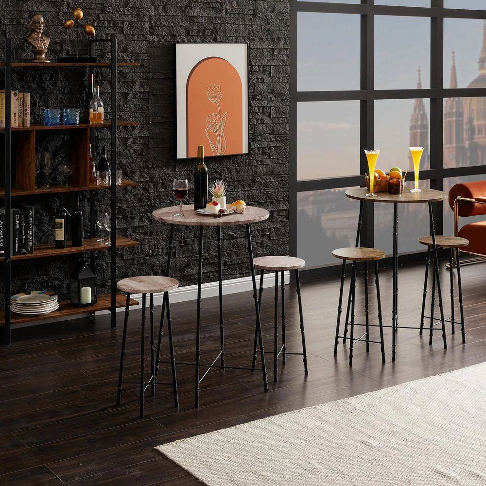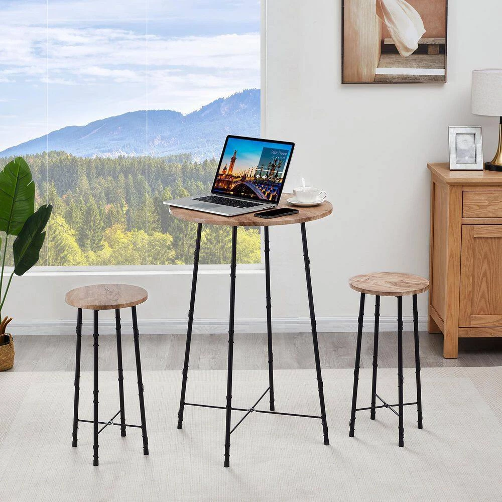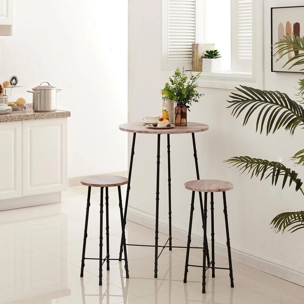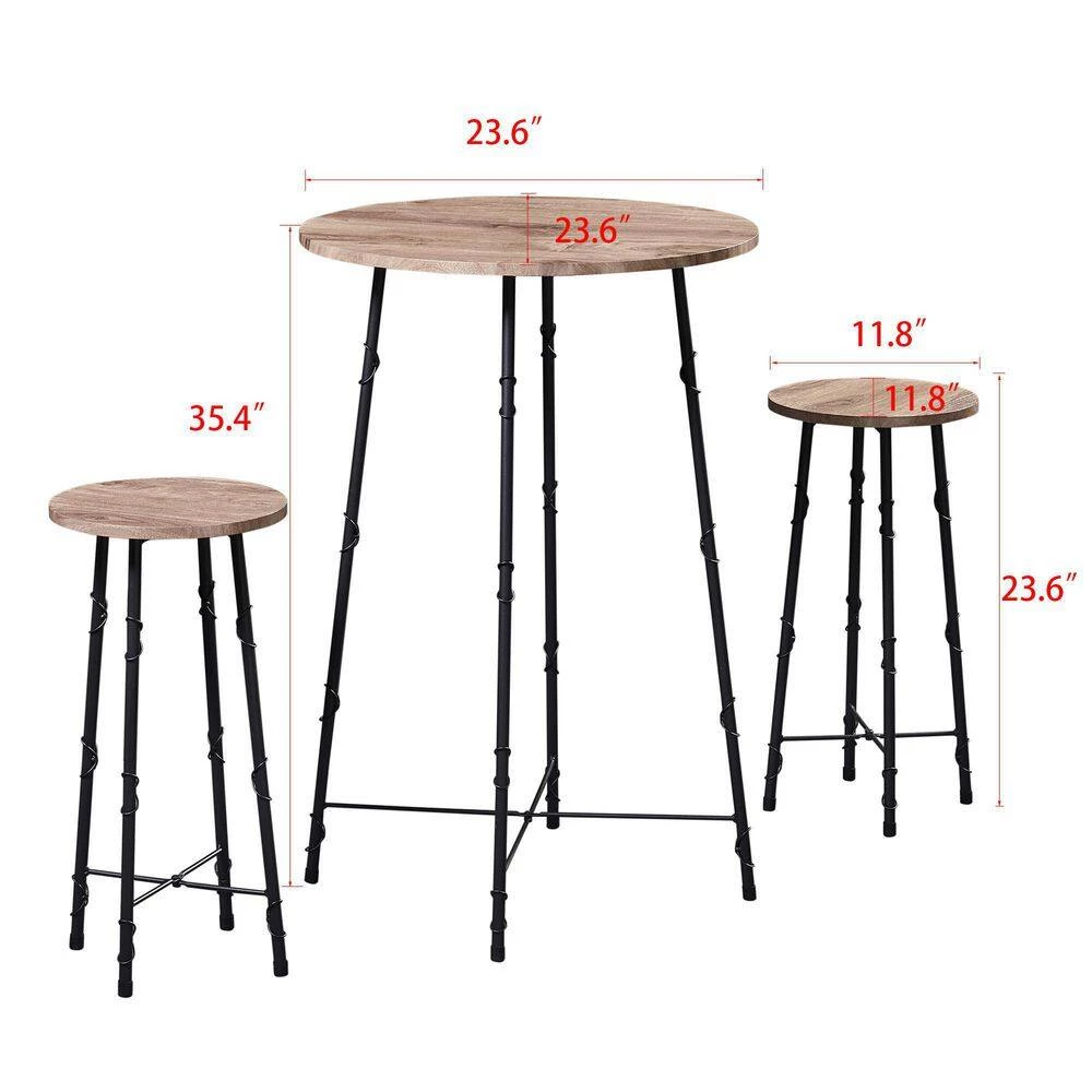 - Solid as a rock: Constructed of a sturdy powder coated metal frame and duty faux wooden board tops, this round bar table and chairs set is low maintenance and easy to clean, and will continue to add ambiance and charm to your dining space for years to come, the extra metal frame under the desk is strong enough to prevent shaking and keep you safe, the thoughtful footrest make you always comfortable and relaxed even sitting for a long time.