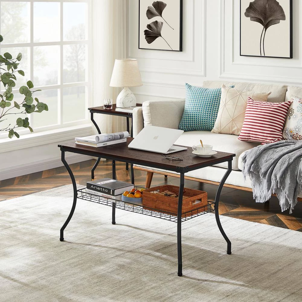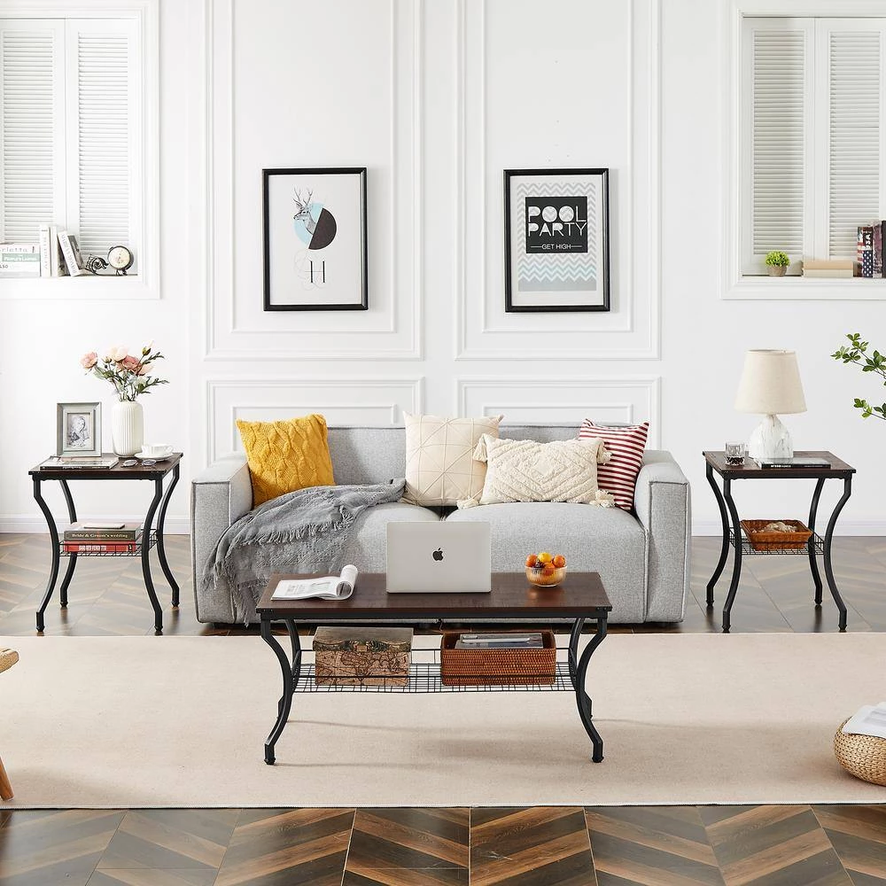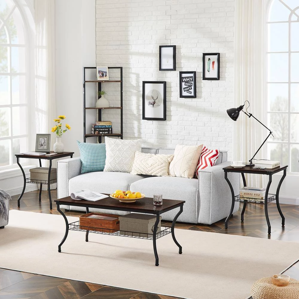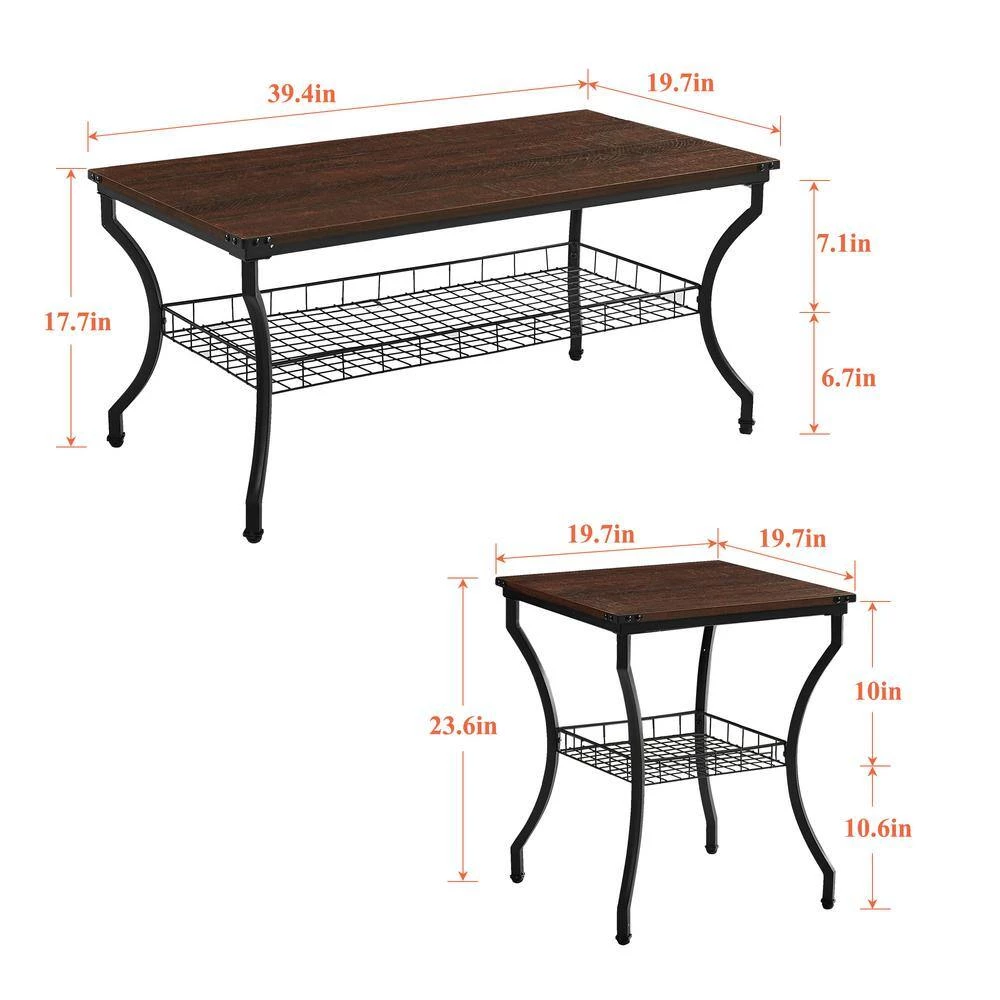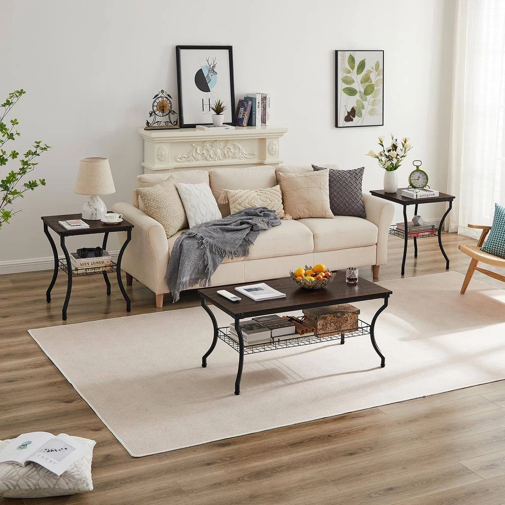 - Stylish coffee table sets-this living room table set unifies an industrial brown tabletop and black metal frame, which causes a charming vintage style, whether a coffee table, end/side table, or match your home style, it will bring you unexpected surprises