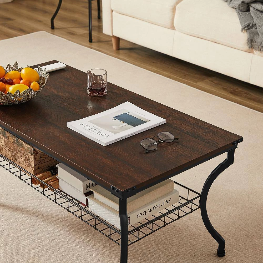 - Ample space for storage-the coffee table and 2 end tables have an open mesh storage shelf, and we also made the shelf into the shape of a basket to protect the items you place from slipping off quickly, the large tabletop and storage shelf will offer ample storage space, making your stuff neat and tidy