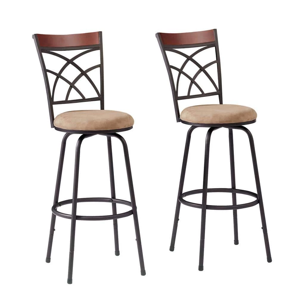 - Comfortable and stylish bar stool (set of 2) features a sturdy backrest that consists of an attractive metal design, round suede cushion seats are generously padded and the footrest ring offers natural support, assembly required