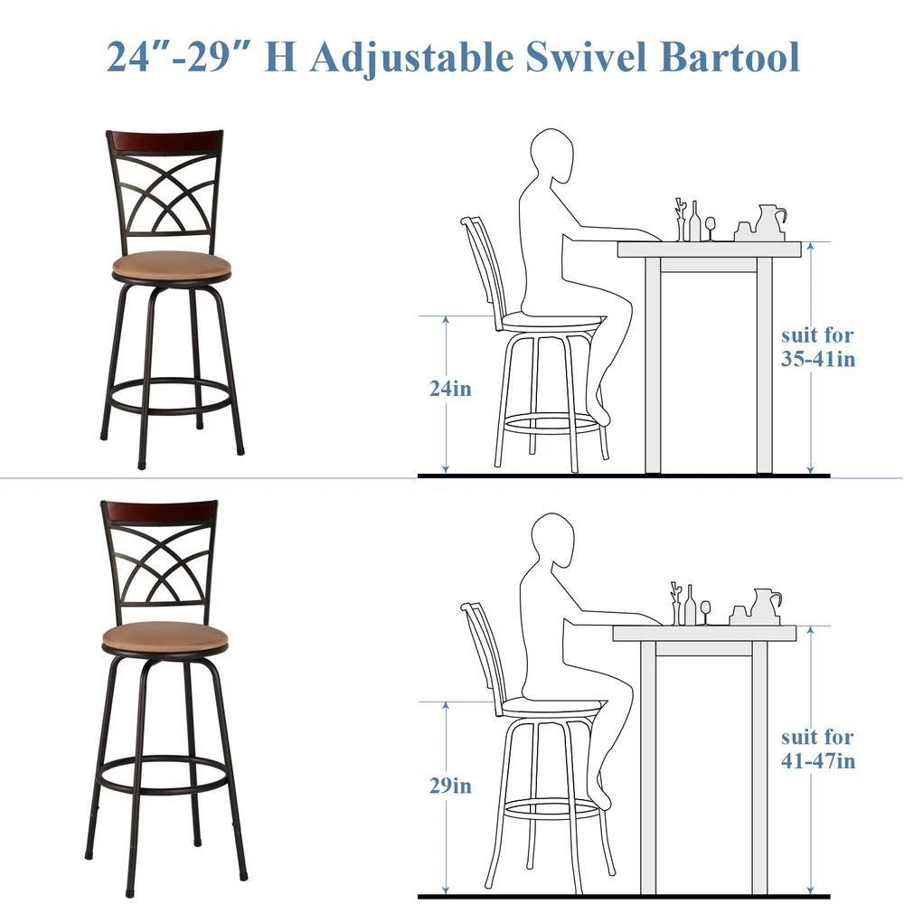 - Height adjust from 24 in. to 29 in. bar stool features adjustable legs, its 4 leg extensions that allow you to adjust the stool height from counter height (24 in.) to bar height (29 in.)