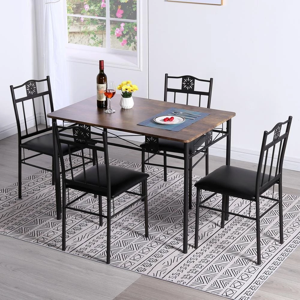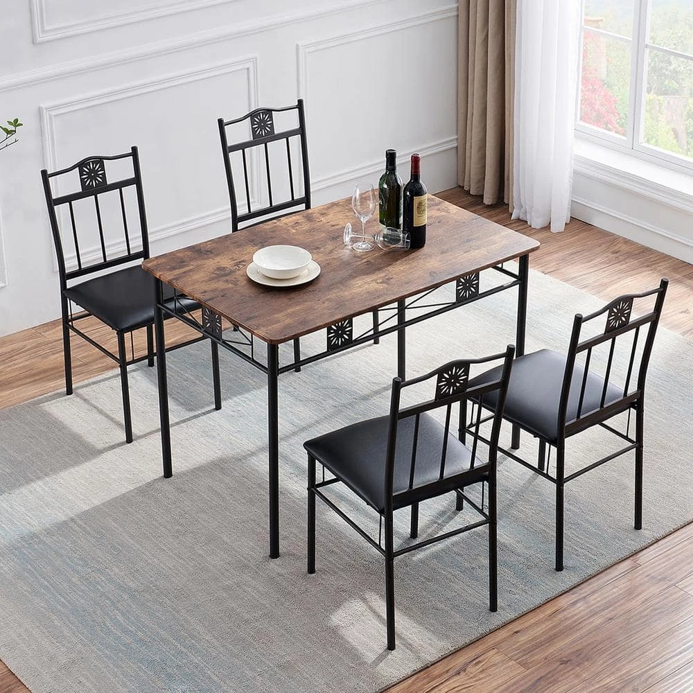 - 5-piece dining table set, dining room table set is a fashionable and practical set, including 1 table and 4 matching dining chairs simple and modern style is perfect for the kitchen bar, home, cafe, terrace, living room, bar, bistro, restaurant, coffee bar or any dining area