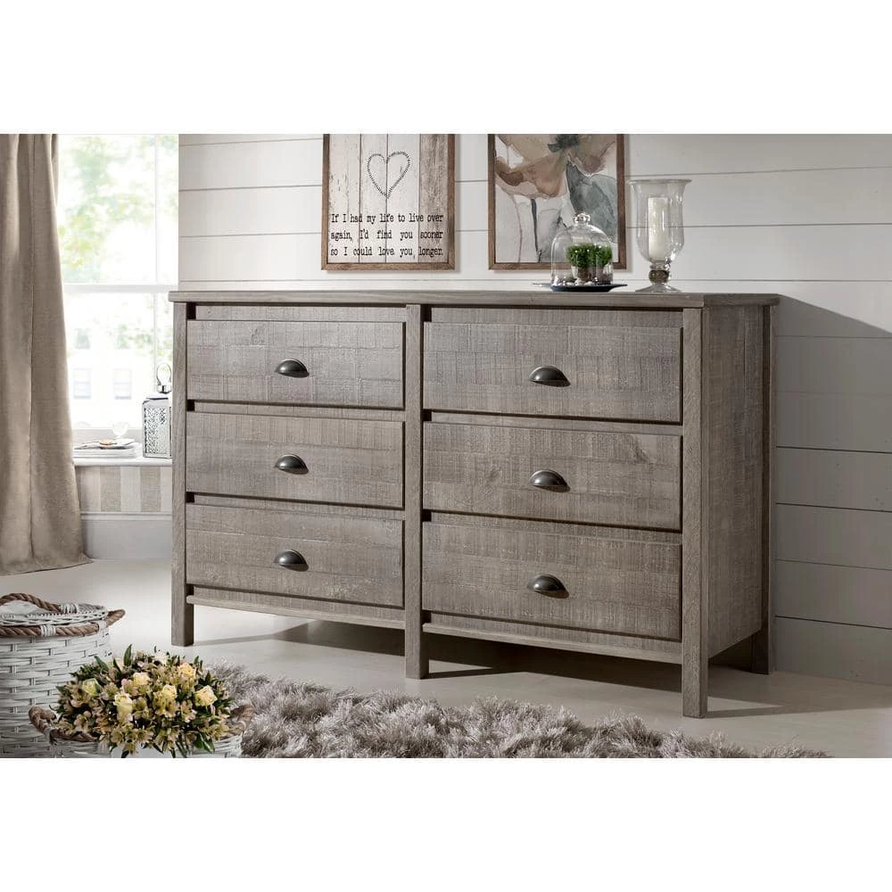 Rustic elegance and contemporary style combine in the Baja Dresser by Camaflexi to create the perfect balance of sophistication and warmth in your bedroom. Constructed of 100% Solid Pine Wood, the water based distressed finish showcases the natural beauty of the wood grains. Featuring six, deep and extra generous size drawers, the Baja Dresser is perfectly designed for organized storage of your clothes and personal belongings. Sturdy and durable, the Baja Dresser is built to last the quality and workmanship youve come to expect from Camaflexi. Concerned for the environment, all Camaflexi furniture is eco-friendly and crafted of Solid Pine Wood sourced from renewable pine plantations.