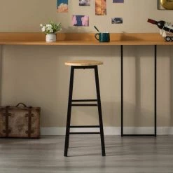 17.5 in. High Wooden Black Round Bar Stool with Footrest for Indoor and Outdoor by Vintiquewise