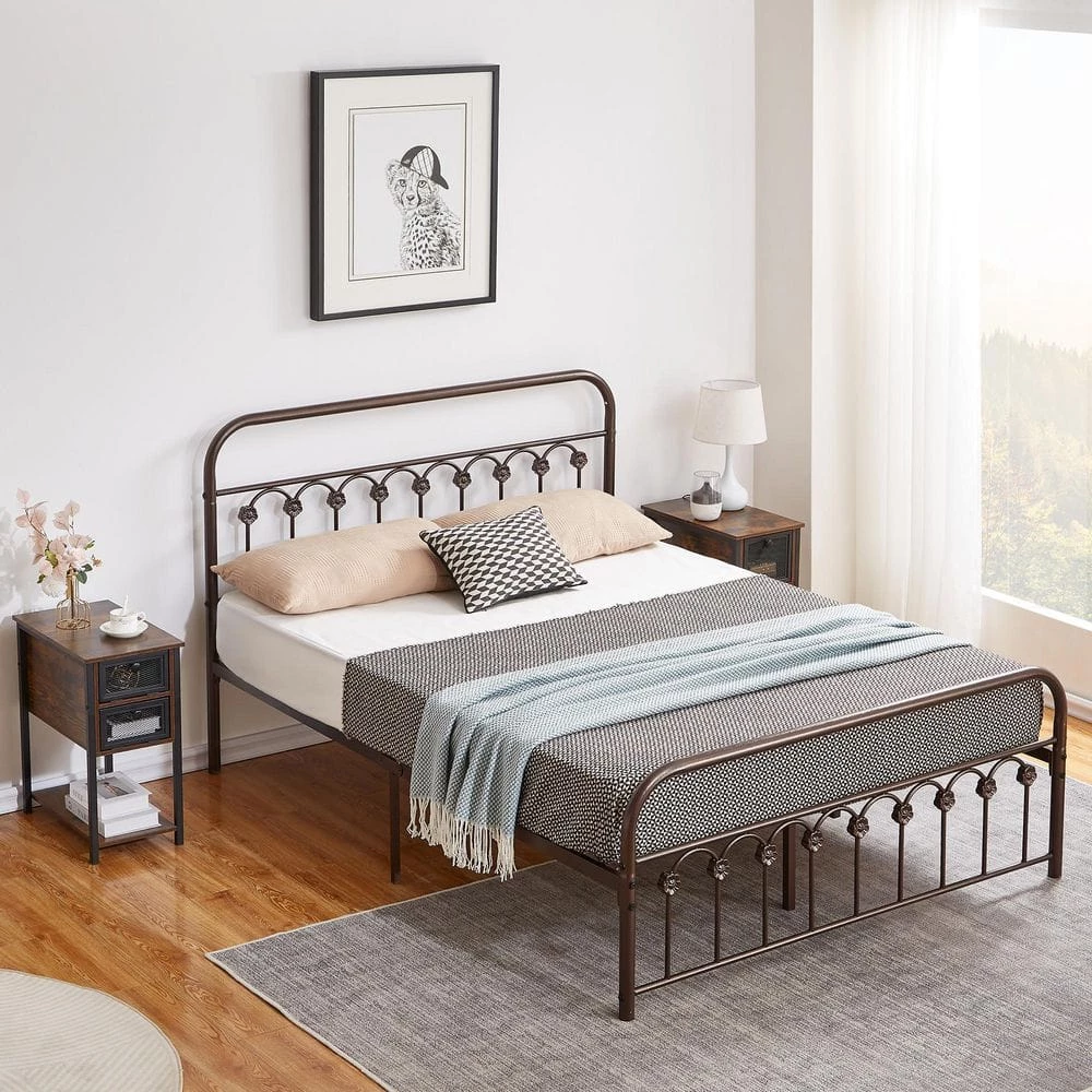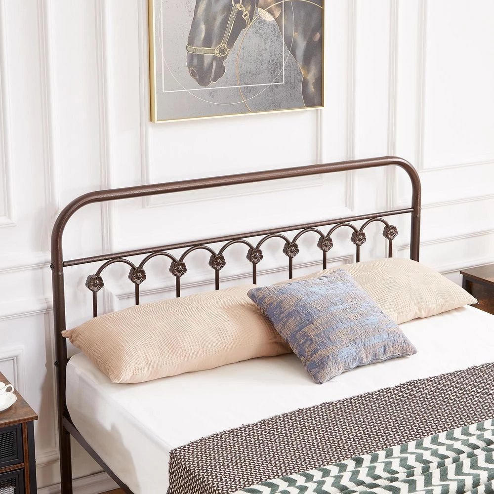 If you are looking for a practical bed frame with a vintage look, this iron platform bed could be a good choice. Inspired by the traditional entrance gates, this bed is crafted of curved lines and round corners in a matte black finish, creating an elegant and warm tone. There are 4-sizes (Twin, Full, Queen, King) for you to choose from as needed. The bed is crafted with a metal slatted frame for solid support and long-term durability. Cleaning will be super easy, just wipe clean with damp cloth and a mild cleaner. The high headboard could kindly protect your head and provide you with a space to sit up comfortably. Ideal for teenagers’ rooms, guest rooms, bedrooms, dormitories, apartments and temporary stay.