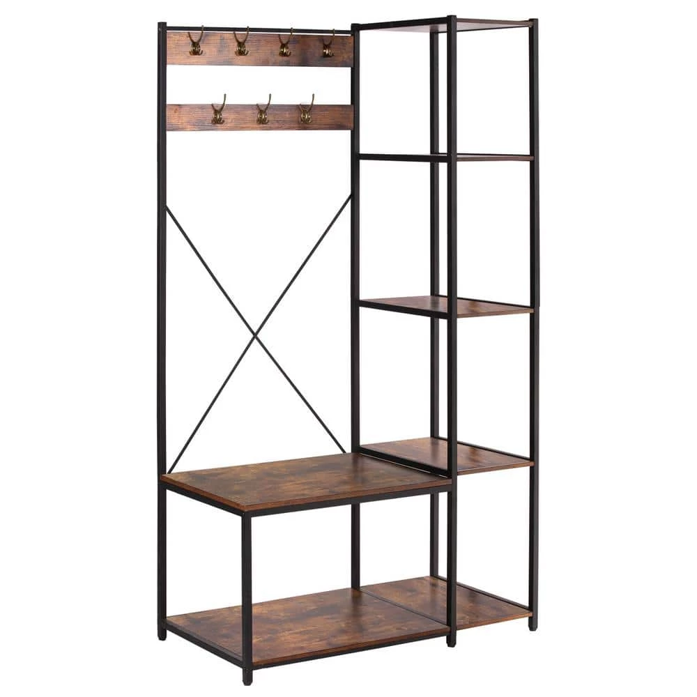 - Perfect all in one hall trees: getting home,tired and eager for relax,a functional hallway rack can really help a lot, with hooks to hang your coat,scarf and hat, benches for your shoes,shelves for others. Everything just in place when you walk in the door