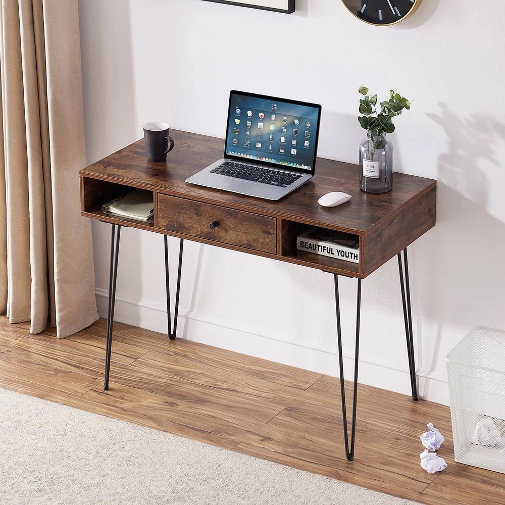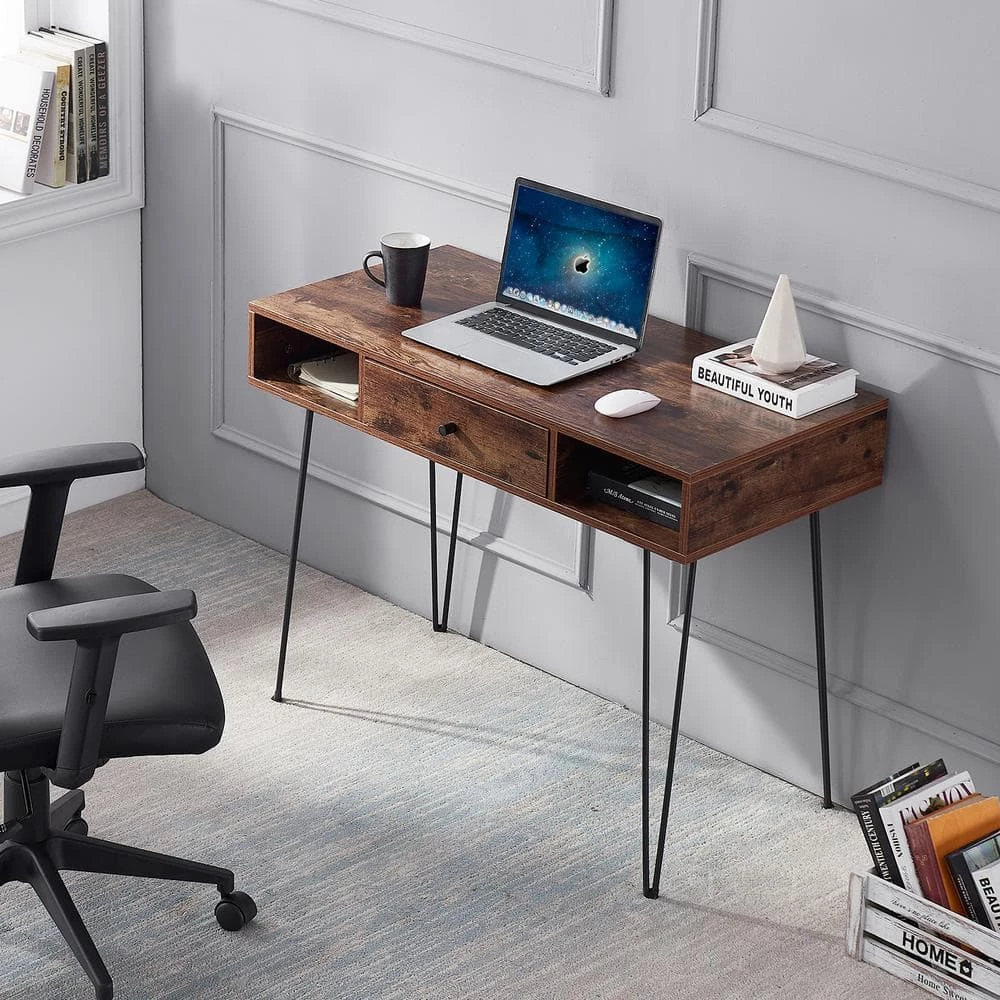 This computer desk fits perfectly into even a small space and also living room, reading room, office. The Computer desk constructed of well-selected wood and metal legs offer stable support. Besides the Simple modernist design, we carefully selected the heavy-duty wood board and rustic brown color, all those make it charming and elegant, match all home decor, you can put it in your study and children’s room.