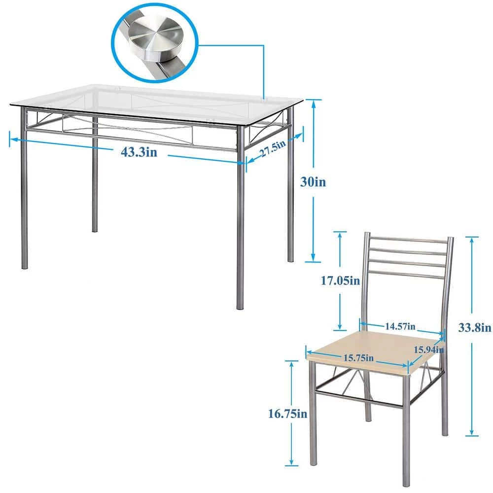 - 💐【Durable & Large Weight Capacity】Dining room table set is made of tempered glass and premium steel, which ensures sturdy and anti-rustic. Spacious table surface will hold item up to 44 lbs. And the weight capacity of each chair is 220lbs. It is enough to meet your daily needs.