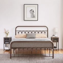 - Sturdy Foundation Rustic Bed Frame: This bed frame is made of premium iron slats and CARB P2-compliant MDF boards for solidly supporting your mattress. Made of quality steel slats, providing optimum support for your all of the types of mattresses, foam, latex or spring mattress without the use of a box spring.Besides, not shaky after proper assembly and noise free.