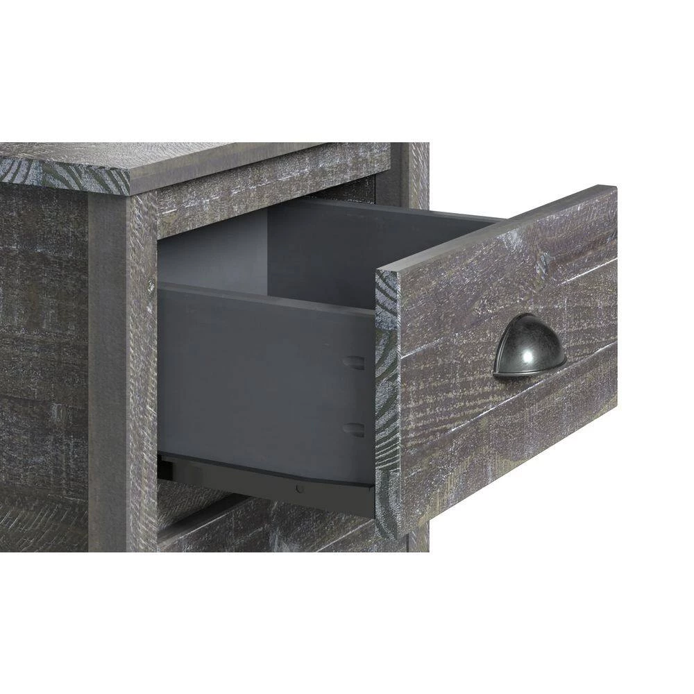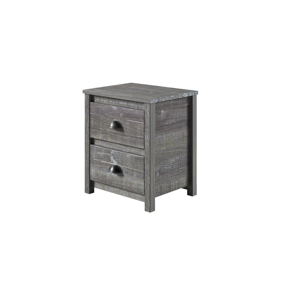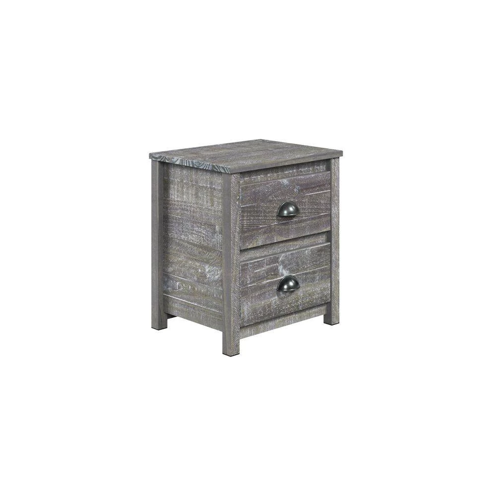 Add that warmth to your bedroom with the addition of the farmhouse style Hampton Nightstand. The rustic elegance and contemporary style combine to create that unique homey feeling to the room. The solid pine wood construction and water based distressed finish bring out the genuine beauty that the wood grains feature, and the cute drawer pulls add that extra touch of class. The two neat drawers complete the picture for perfect easy access bedside storage. To complete the bedroom set, add the matching nightstands, dresser, and more (sold separately). Sturdy, durable and built to last – the quality and workmanship you’ve come to expect from Camaflexi.
