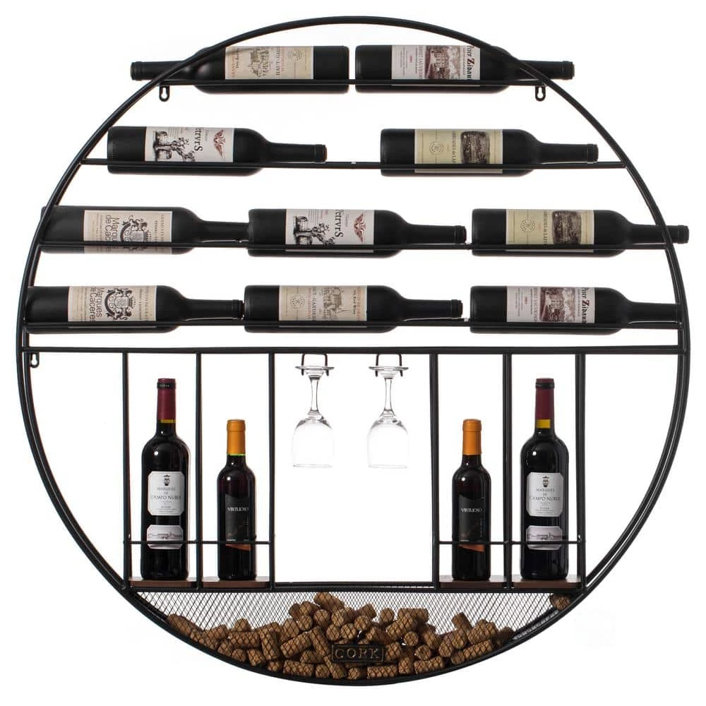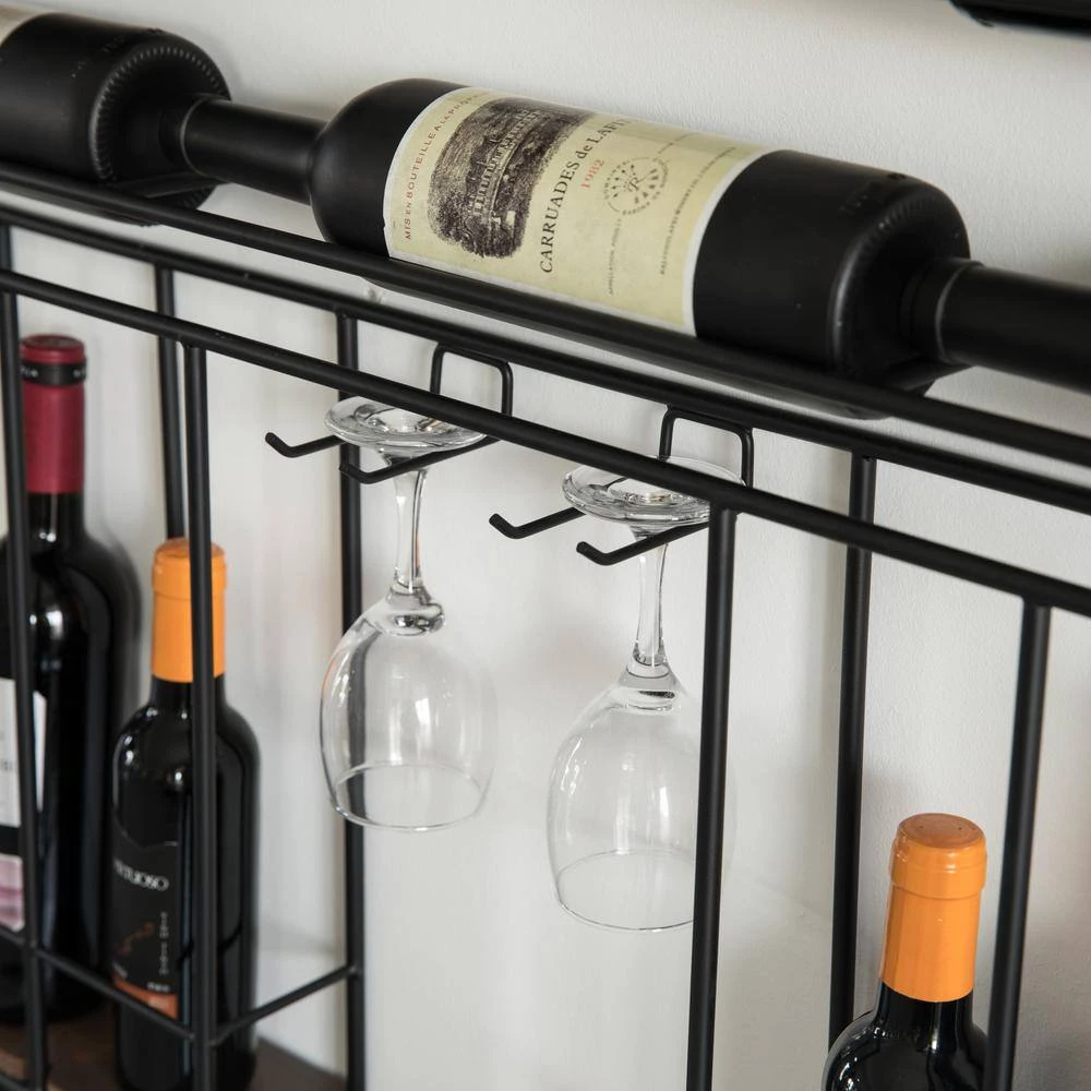 Complete the decor of your room with this vintage wine holder. Composed out of durable wood and metal material, this wine holder offers durability and practical function for continual use. Vintage metal and wood designed base create a decorative appeal to your room decor. Use this wine holder to store up to 14 wine bottles and and 2 glasses to keep your wine collection secure and handy.