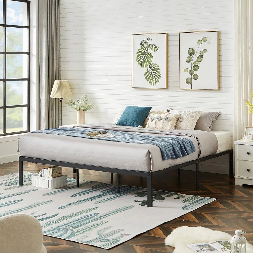 - No Box Spring Required: King bed frame simplifies the purchase process without having to match a box spring, save your time. Enjoy zero noise and non-shake comfort experience with King bed frame.