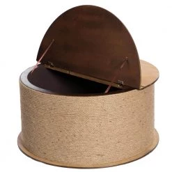 Natrual Decorative Round Spool Shaped Wooden Coffee Table with Rope Lift Top Storage by Vintiquewise