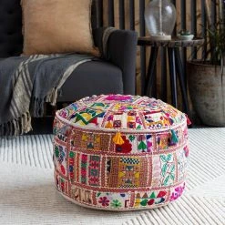 Rita Oriental Bright Blue Cotton Cube Accent Pouf by Artistic Weavers