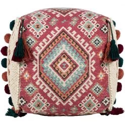 Arethusa Southwestern Dark Red Cotton Cube Accent Pouf by Artistic Weavers