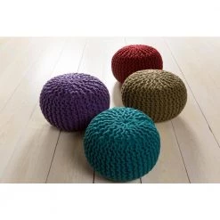 Altena Solid Camel Cotton Round Accent Pouf by Artistic Weavers