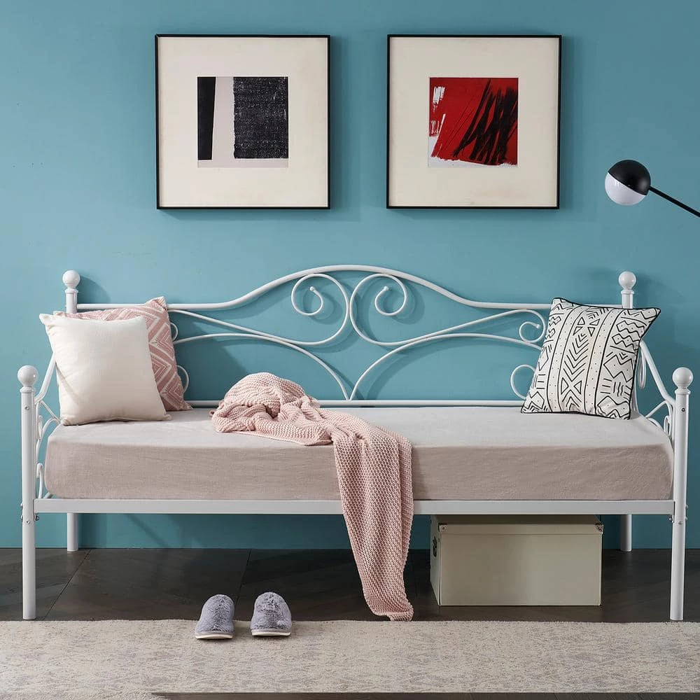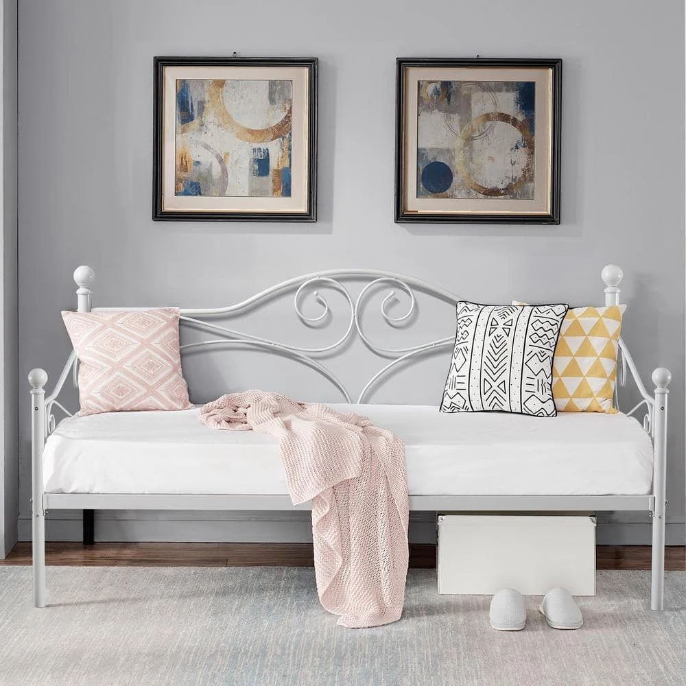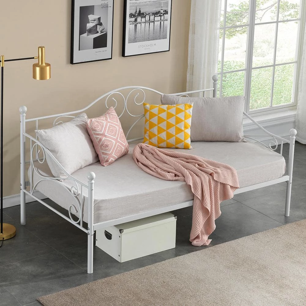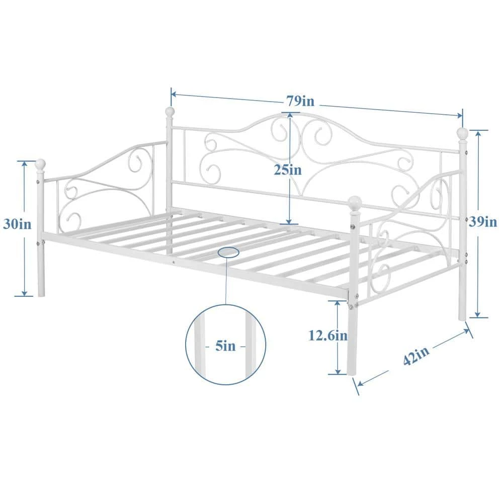 - 『Space Saving』 : Comes in twin size,this is a very space saving metal day bed frame. It is a perfect daybed for living room,guest room,small apartment,dorm room or office. It serves greatly as a guest daybed for over night relatives or friends