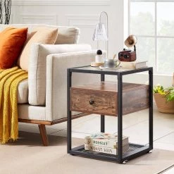 - Material: combination of metal frame and wooden drawers on top and bottom