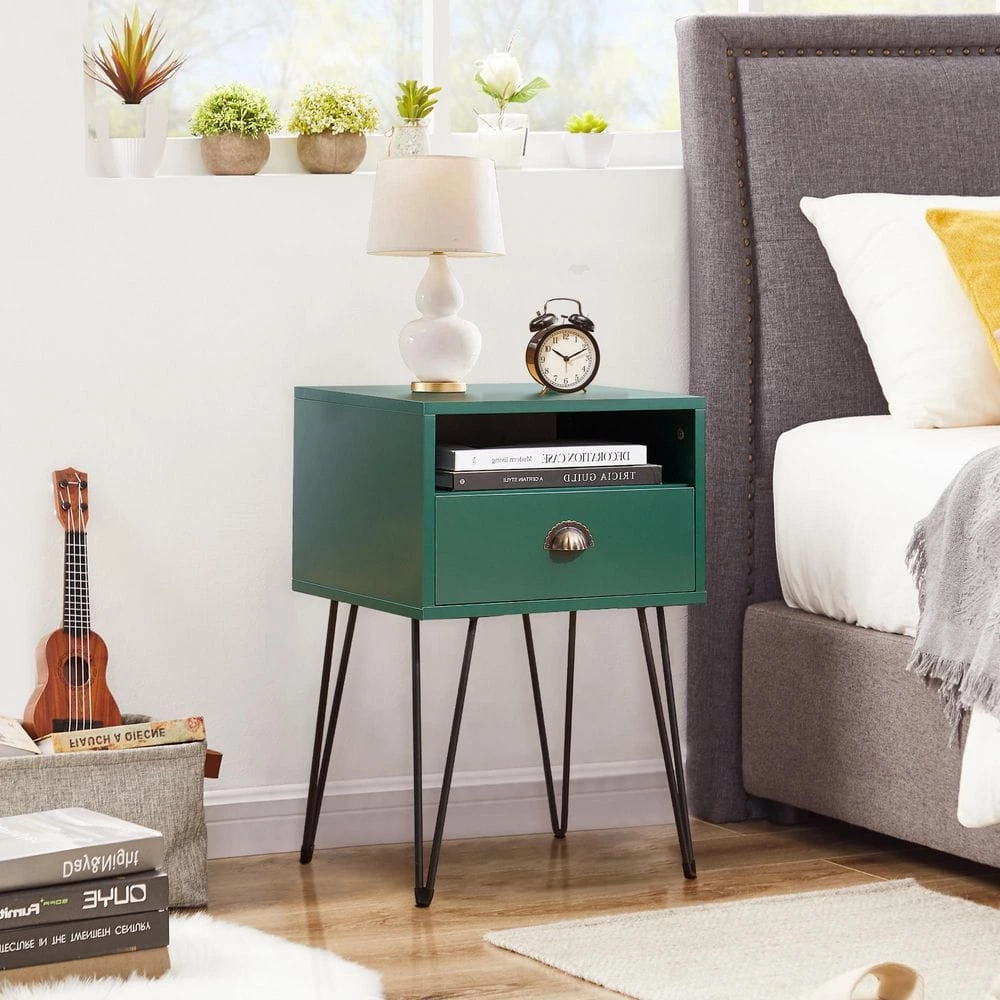 - 【Enough Storage Space】15.7″ L x15.7″W x 23.7″H product size with 1 drawers & 1open compartment, provided to store daily stuff, such as books, phones, decoration, the desktop space is suitable for alarm clock, plants, snacks, laptops etc. Everything can be out of sight, but also within you reach, make rest time more convenient.
