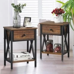 - 【Applicable space】: The end table can used as an end table beside your sofa or a simple storage cabinet to organize your stuff; appropriate size makes bedside nightstand a perfect storage cabinet in living room, bedroom, study, etc.