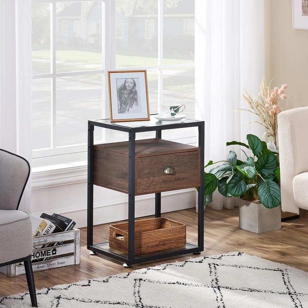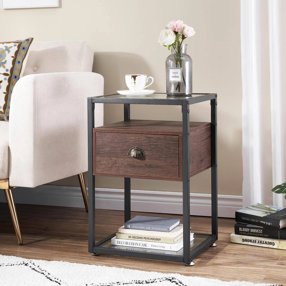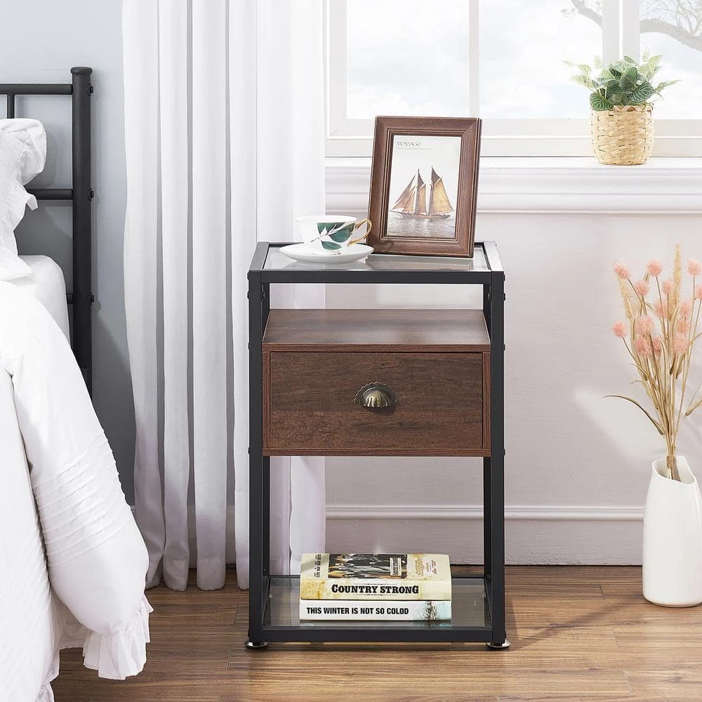 The nightstand features an open glass base with an glass top that has a single drawer, perfect for holding your nighttime essentials. You could place books, magazines, cups, or other decorative items and store personal item in the drawer. Simple color collocation blend well with your home decor.