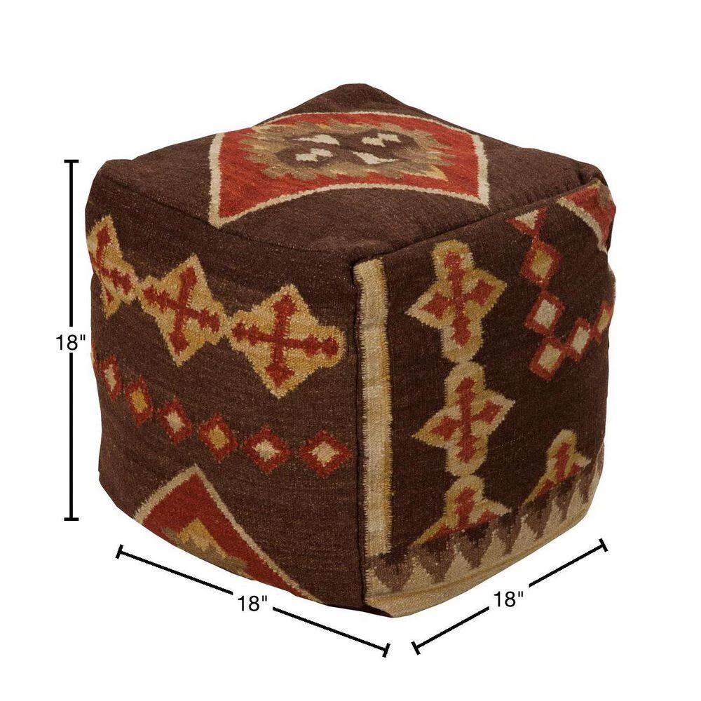 Smooth earth tones will soften any space adding a sense of warm comfort with this perfect pouf. Featuring an alluring design in brown, gold and rust red coloring, this piece will embody classic charm in your home. Genuinely faultless in aspects of construction and style, this piece embodies impeccable artistry while maintaining principles of affordability and durable design, making it the ideal accessory for your decor.
