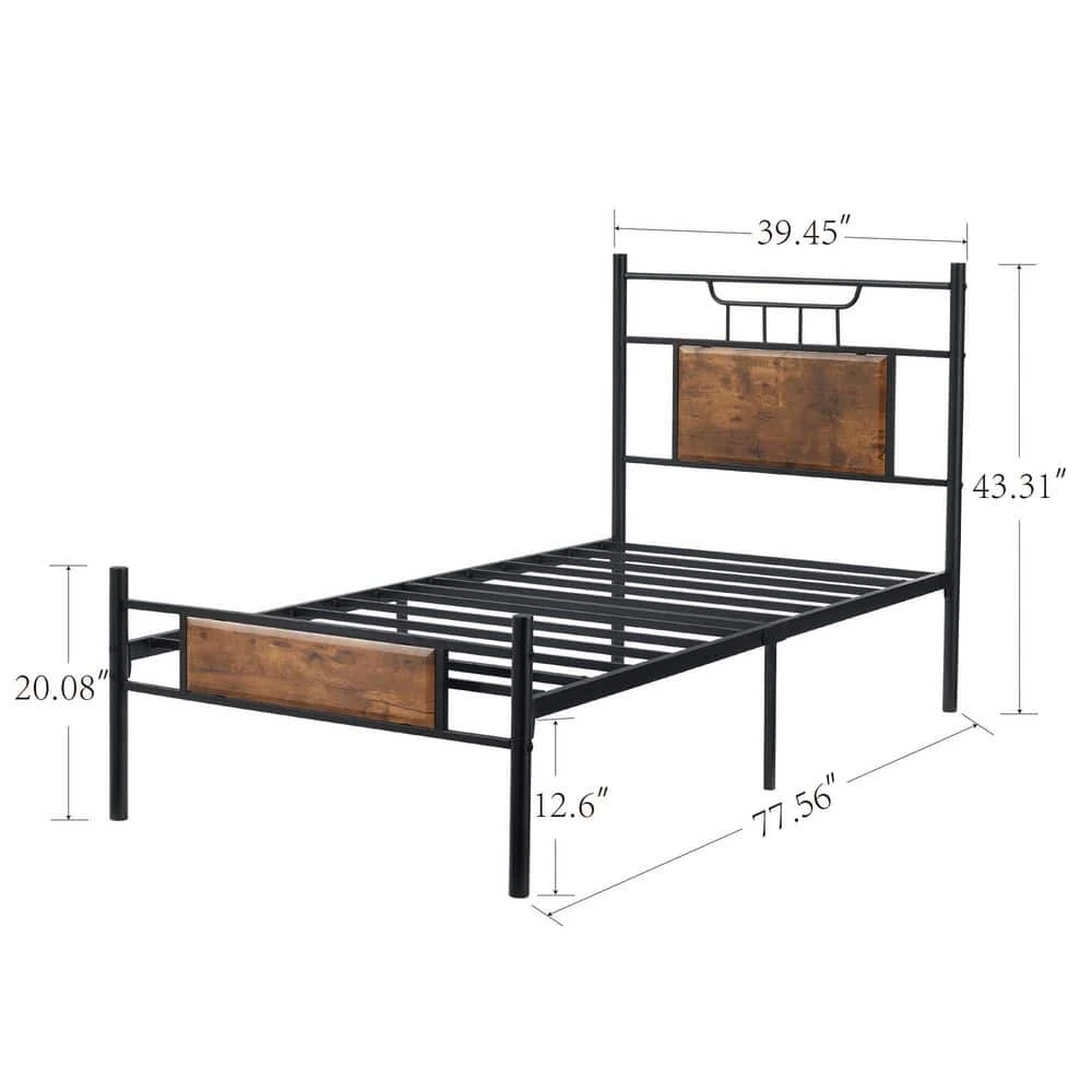 - Metal bed frame for twin size, overall sizes include width: 39.5 in., length: 77.56 in. and height: 43.31 in. Maximum weight capacity: 300 lbs. it is constructed of strong sideer rails and sturdy support legs for excellent load-bearing capacity