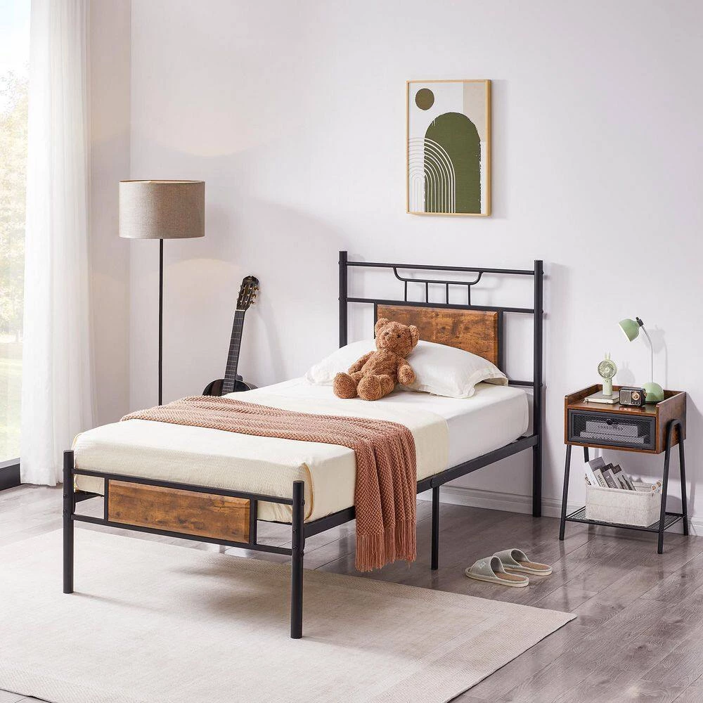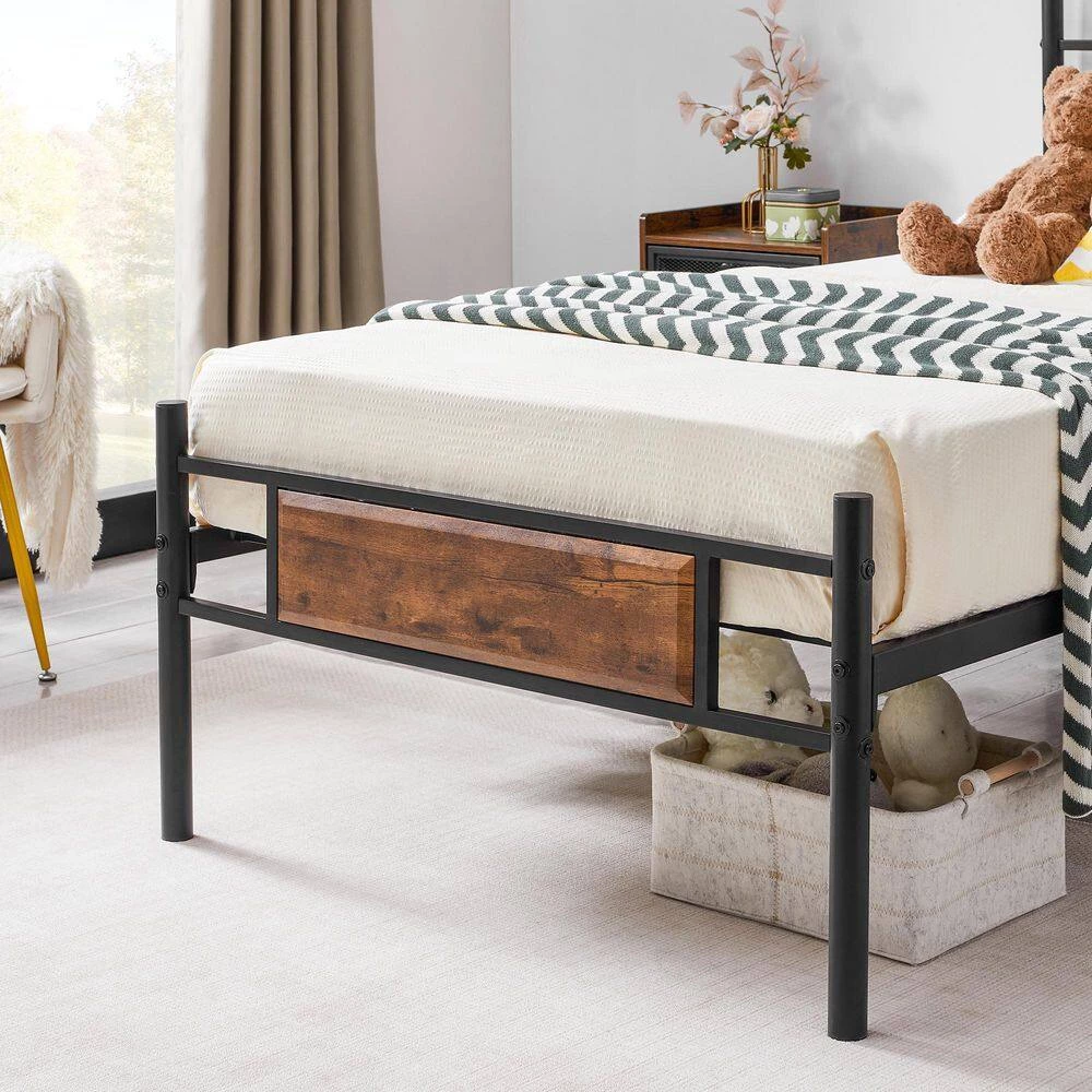 - Sturdy foundation, bed frame is made of premium iron and high-grade mdf panels for solidly supporting your mattress it is constructed of strong sideer rails and sturdy support legs frame includes 12 built-in metal slats between two sides